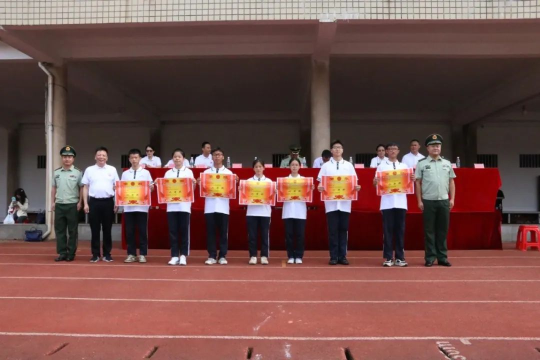 全场最激动人心的时刻来临——刘美红校长宣读军训中的获奖班级、优秀教官、军训优秀学员及内务整理优秀寝室,并由出席的领导为他们颁奖。
