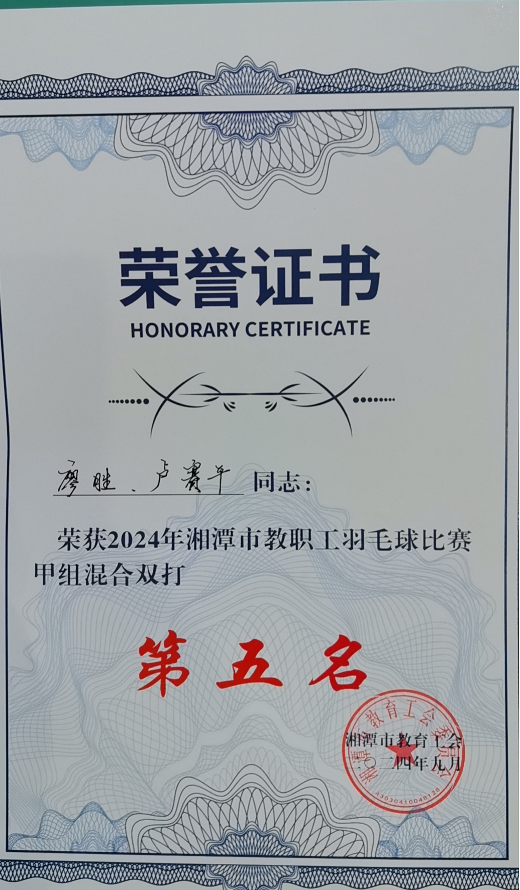 热烈祝贺湘潭市第一中学代表队在市教育系统2024年教职工羽毛球比赛中勇创佳绩!