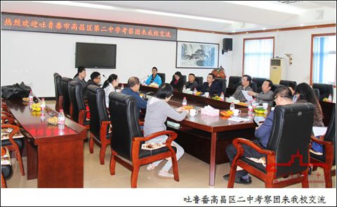 4月26日下午,新疆吐鲁番市高昌区第二中学刘萍校长一行6人在市教育局宣传交流合作科唐明科长陪同下来我校进行交流,受到了学校的热烈欢迎。