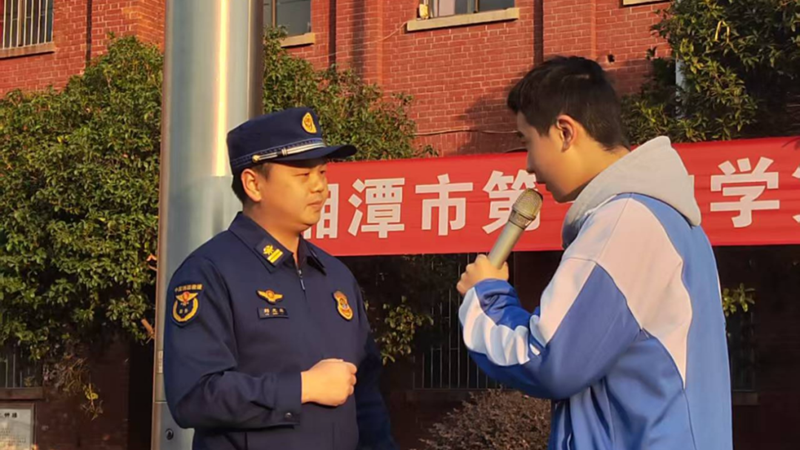 庄严的升国旗、唱国歌仪式后,雨湖消防救援支队的刘光毅队长受邀登台开展专题宣讲。宣讲中,刘队长结合近期香港大埔宏福苑重大火灾案例,深入剖析了竹制脚手架、非阻燃防护网等违规材料如何加剧“立体燃烧”,以及“烟囱效应”对火势蔓延的助推作用,用真实悲剧敲响安全警钟。